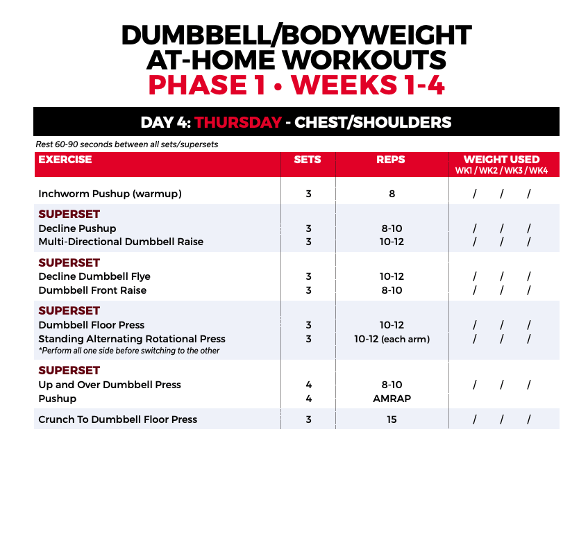 This is a workout from Phase 2 of last year’s Photo Shoot Ready Challenge. This workout was from the Dumbbell/Bodyweight Only program, meaning all you need is dumbbells and your own bodyweight to follow along.
