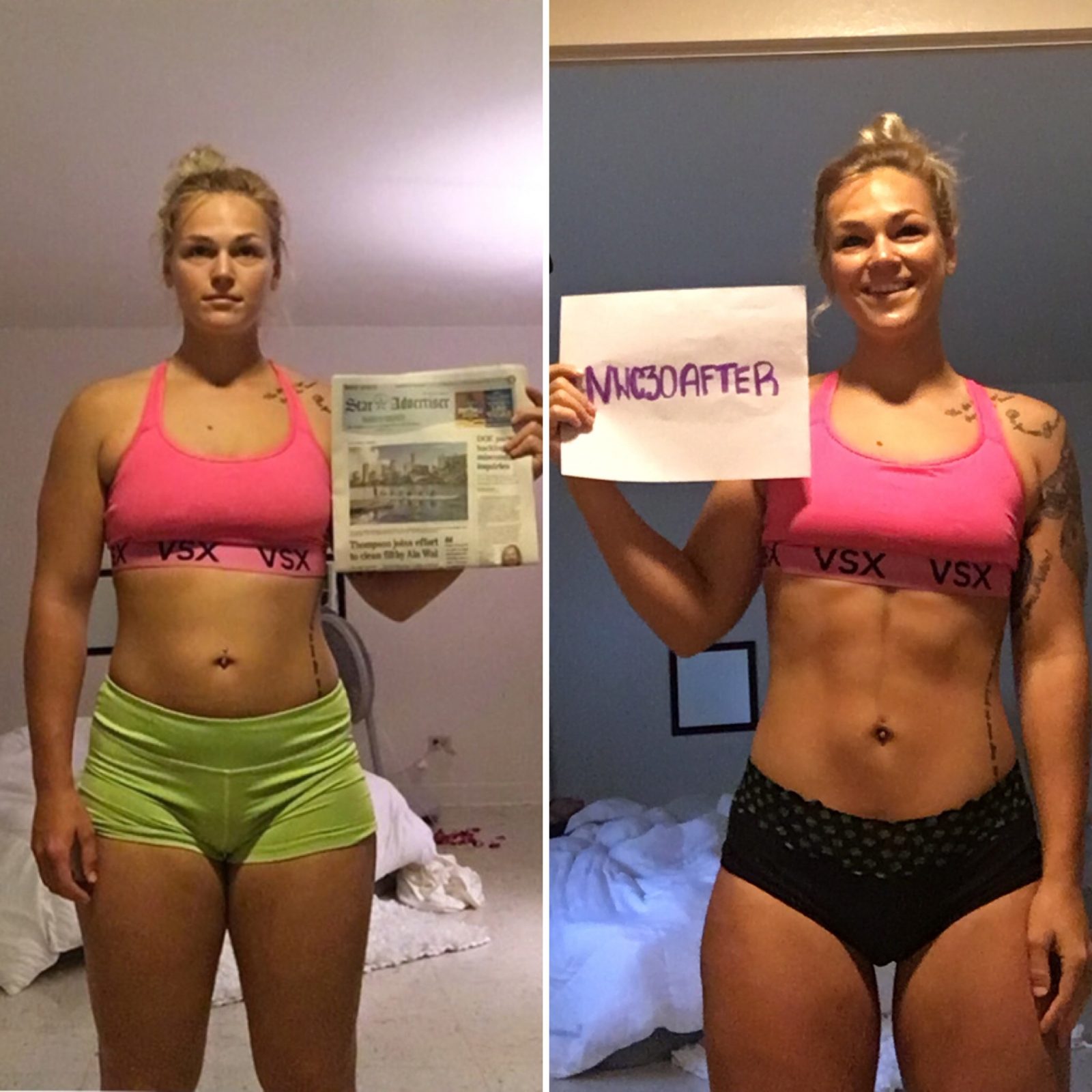 For those of you who don’t remember, Mary lost 13 pounds and 7 overall inches during the 30 Day Transformation Challenge. She was so encouraged by her progress during the Challenge that she decided she will enter her first figure competition this year! Check out her before/after photos from the 30 Day Transformation Challenge below.