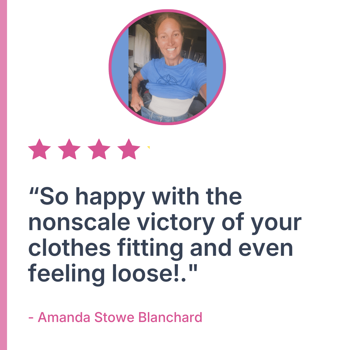 Awarded to a woman who consistently shares her journey inside the private Facebook group