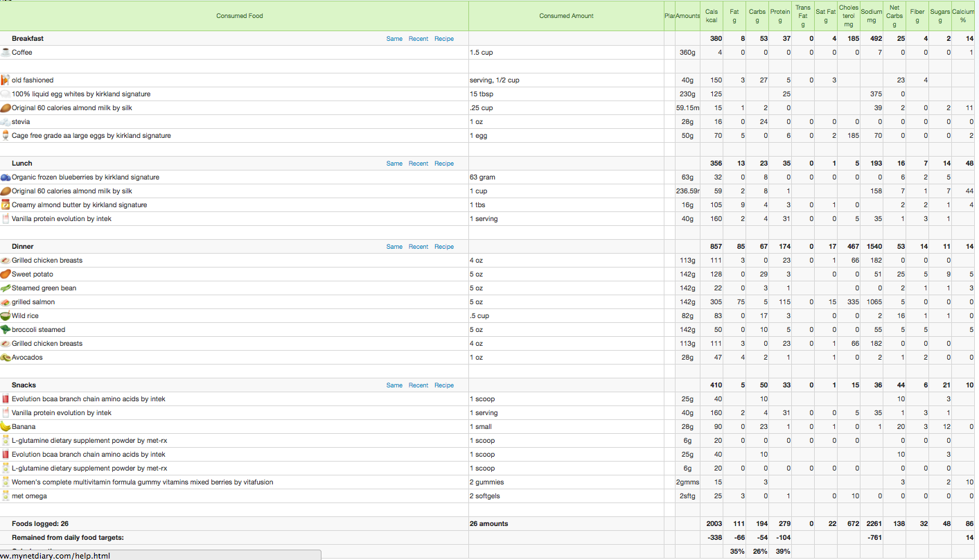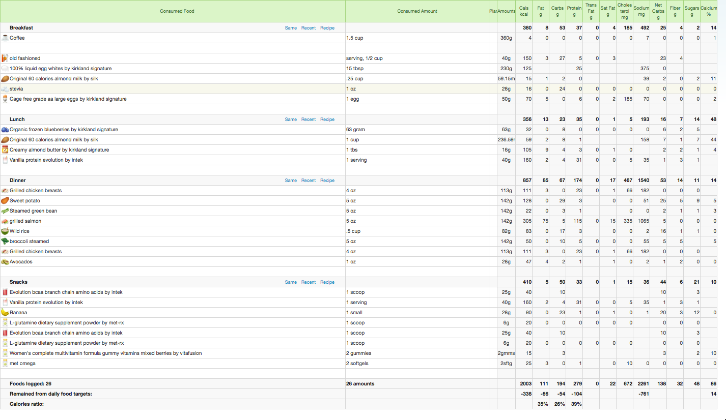 ParticipantIncluding supplements? Cuz when I totaled just my supplements (including the post-workout shake) I got 370 cals! That’s like a meal in and of itself!